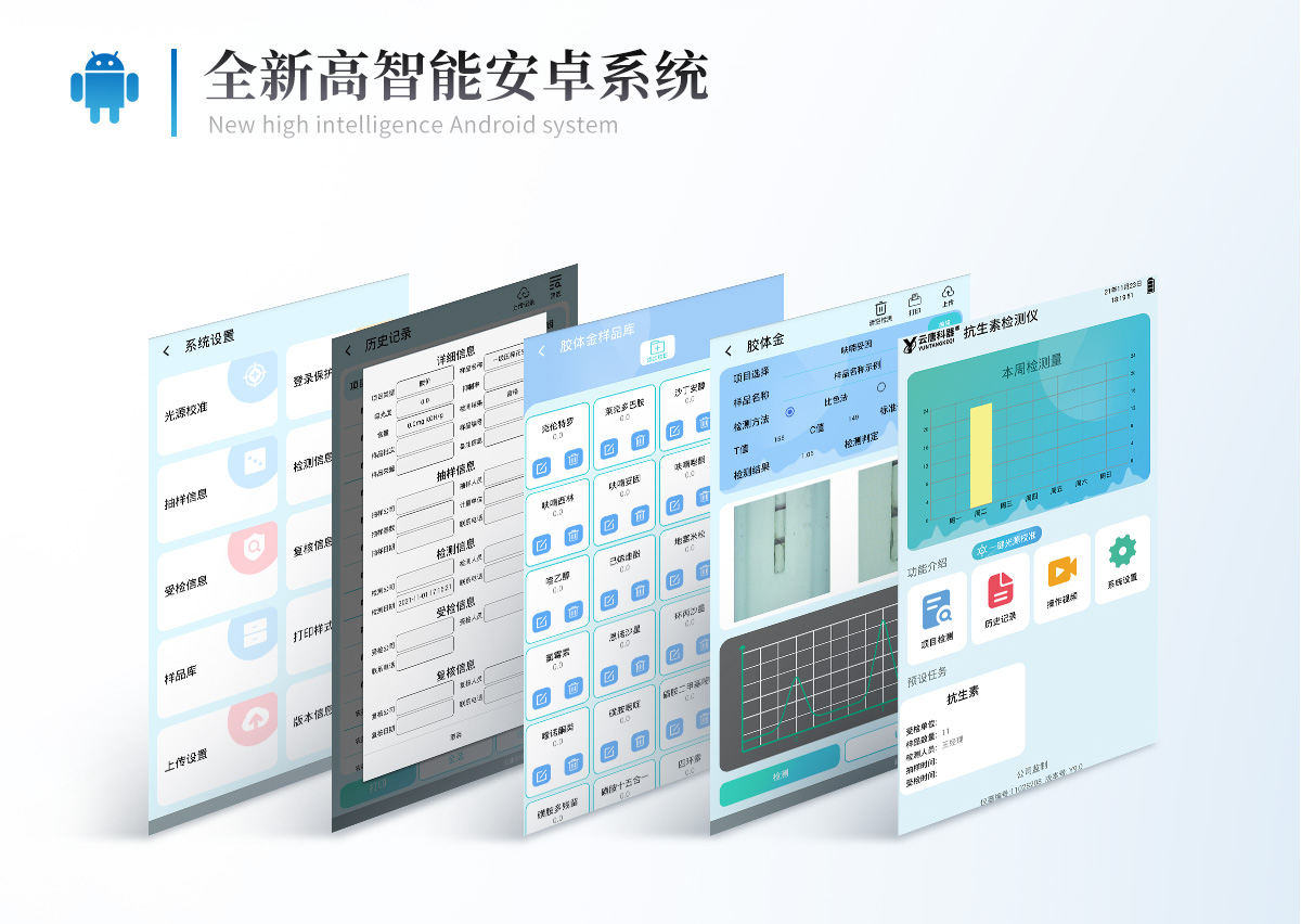 TEL:133-7109-8225 咨询客服山东云唐智能科技有限公司生产的抗生素残留检测仪可现场快速检测抗生素类残留、兽药残留、激素类残留、毒素类残留,化学类残留等多种项目,如可快速检测四环素类、硝基呋喃类、磺胺类、沙星类、喹诺酮类、氯霉素、庆大霉素、链霉素、喹乙醇代谢物、硫酸链霉素、羧苄青霉素、噻孢菌素钠、阿莫西林、氨苄西林、红霉素、潮霉素B、安普霉紊、杆菌肽等抗生素快速检测;还可检测激素类:盐酸克伦特罗、沙丁胺醇、莱克多巴胺、己烯雌酚等,水产兽药:呋喃妥因代谢、呋喃西林代谢、呋喃它酮代谢、呋喃唑酮代谢、孔雀石绿等,毒素类:黄曲酶毒素B1、呕吐毒素、玉米赤霉烯酮、赭曲霉毒素A等,化学类药物:氨丙琳、甲基吡啶磷、阿灭丁、双甲脒、阿散酸、阿维菌素、氮哌酮、苄青霉家、头孢噻呋、克拉维酸、氯羟吡啶等项目