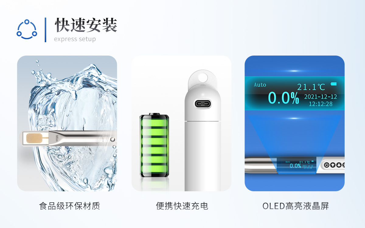 ■没有二次污染 探头所选材质均为食品级环保材质,不会产生二次污染。