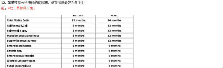 1. 检测瓶可以检测多少种微生物,分别是什么? 答:活菌总数、大肠菌群、大肠杆菌、肠道杆菌科、金黄色葡萄球菌、绿脓杆菌、沙门氏菌、李斯特菌、肠球菌、亚硫酸盐还原梭状芽孢杆菌、产气荚膜梭菌、曲霉属真菌、曲霉菌、酵母菌。 以后还有陆续有其他微生物菌种的检测瓶相继面世。包括军团菌等。 | 2. 检测瓶在检测大肠杆菌时,可以检测到所有的大肠杆菌菌株么(包括目前流行的 EHEC?) 答:是的,可以检测到全部的大肠杆菌菌株,包括 EHEC 肠出血性大肠杆菌(E.coli O104, O111, O157 等) | 3. 检测瓶的应用范围有哪些? 答:卫生控制:食品(HACCP),厨房、工具、表面(HACCP),水质,(CDC)疾病控制、进出口检验检疫、药品及化妆品。 与我们生活息息相关的:环境监测机构,农产品及相关加工公司,水源检测和制水厂,水配送公司,药厂、药房、化妆品厂,分析实验室和 HACCP 诊断,奶制品厂,咖啡馆、餐厅,消费者保护团体、工商管理机构,室内空调调节公司,尤其能应用于军事、大型展会等的食品快速检测。 | 4. 你认为大肠杆菌检测瓶、李斯特菌检测瓶、沙门氏菌检测瓶除了是用于食品安全检测外,适用于医疗么? 答:大肠杆菌(EHEC)、李斯特菌、沙门氏菌,这三款检测瓶可用于体外临床检测。 Royal 微生物检测瓶系列的全球定位依然是食品安全。在欧洲,对人体进行微生物的临床体外检测是非常少的,欧洲的各方面安全控制的很好。然而,在发展中国家,以上三款微生物的人体体外临床检测经常发生。而以上三款检测瓶用于体外临床检测的安全性和准确度都可以保证。 4 合 1 试纸片和检测瓶市场定位的区别 1)4 合 1 试纸片和检测瓶比较 4 合 1 试纸片配合其分析仪,一台分析仪可以同时检测 48 个试纸片。因此,从经济成本的角度考量,一开机就是 48 片同时检查。对于医院,攒够 48个粪便样本后,一次性进行分析。 检测瓶,一个样本就可以进行检查。而且更大的优势在于,这款产品会非常受医生的欢迎。因为医生可以不用接触样本,这是目前大多数的医院检测无法做到的。把瓶子给病人,让病人自己将粪便样本放入后送回给医生。医生拿到检测瓶,在医院的振荡器上摇匀后,放入孵育机,等待结果判读即可。 2)检测瓶与医院目前传统检测法的比较 ?目前医院的检测方式依然是培养皿法居多。这种方法*令医生反感的地方是医生要接触样本。如果医生处于怀孕期,接触到李斯特菌的后果就是流产。如果检测台没有处理干净,也容易导致微生物的传播。 检测瓶,医生完全不用接触样本。样本放入检测瓶的的这个过程交给病人在卫生间去操作就可以。医生要做的就是简单的摇匀和放入孵育器孵育(振荡器和孵育器都是医院的常规设备)。 | 5. 无论固态、液态还是表面样本,在检测时是否都无需进行前处理? 答:是的 | 6. 检测仪的特异性是多少? 答:99.999%(理论极限值) | 7. 检测仪的灵敏度是多少? 答:可以检测到 1 个活菌的理论极限值。 | 8. 做定性分析时,检测需要几步,分别是什么? 答:三步:加样;摇动瓶子直到充分溶解和混合;在适当时间判读结果(根据对照表)。*后不要忘记按下瓶盖上方进行无菌处理。 | 9. 做定量分析时,检测需要几步,分别是什么? 答:同上。具体请参考检测仪操作文档。 | 10. 检测后按下检测瓶瓶盖的目的是什么? 答:无菌处理,请参考上第 45 题。 | 11. 检测瓶的储存温度是多少? 答:在 20℃-25℃左右既可以储存,这个温度下很方便运输,对于临检来说是有利的。但随着大气温室效应,夏天时还是要注意储存温度不要超过 25℃,负责会影响检测瓶检测的灵敏度。然而,如果可以放到 4℃进行储存,保质期可以延长近一倍。 |