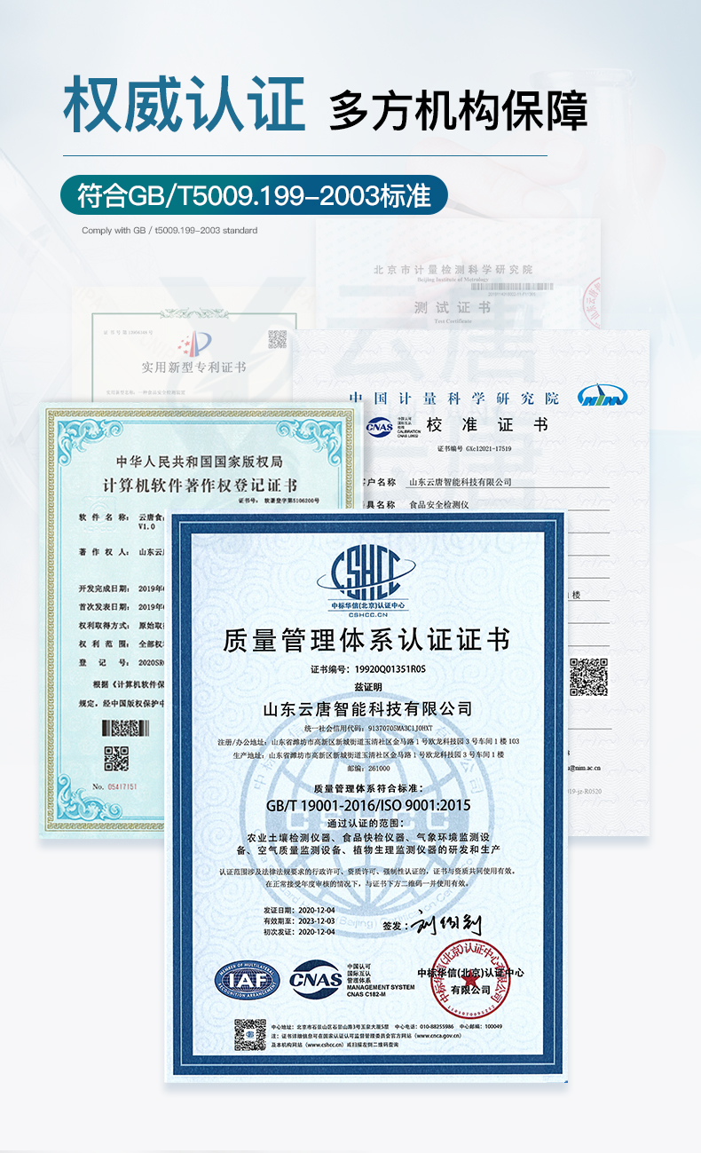 9)安全证书,放心保障:仪器具有中国计量科学研究院校准证书,权威认证。